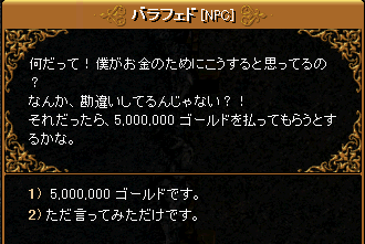 を選ぶと、5,000,000Goldを支払えといわれます。