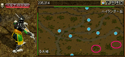 狩場2箇所の内、左側にある森の中を狩る場合はMOBヘルシャウトに注意。攻撃速度が速く火属性の遠距離攻撃をしてきますので、下手すると倒す前に死んでしまう事も。。。一応火抵抗装備を持っていきましょう。