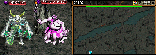 カリン・デイス に2つの宝石を渡し、今回が最後になるハンヒ山脈/ドレム川付近・河口ダンジョン“ラ”へ。狩るのは メロウ と キャストアイ の2種類。