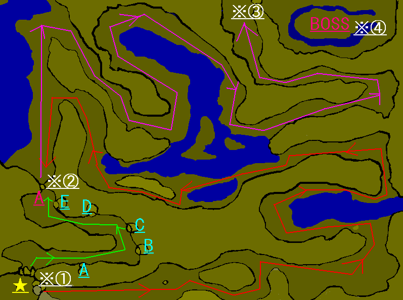 | A~E | リーダーが助けるNPCの箇所 |
