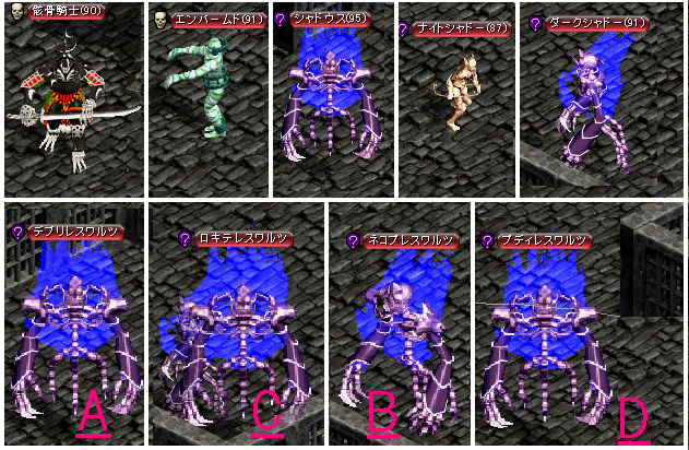 A⇒デブリレスワルツ / B⇒ネコプレスワルツ C⇒ロキテレスワルツ / D⇒プディレスワルツ |