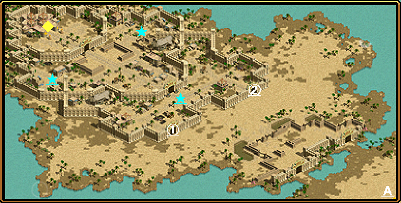 | ① ② | 城内への門。正面と右の2箇所で、破壊する必要有り。 |