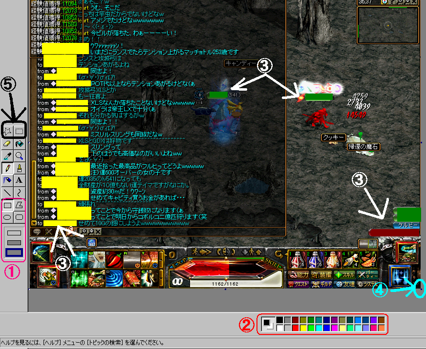 普段のMAPの自分の位置印やPTメンツ番号などや、プライベートブログに良く使っているSSの名前編集も、大体⑤を応用して消しています。