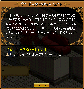 3万Goldを支払って市民権を獲得するを選択し、会話終了と共にクエスト終了。