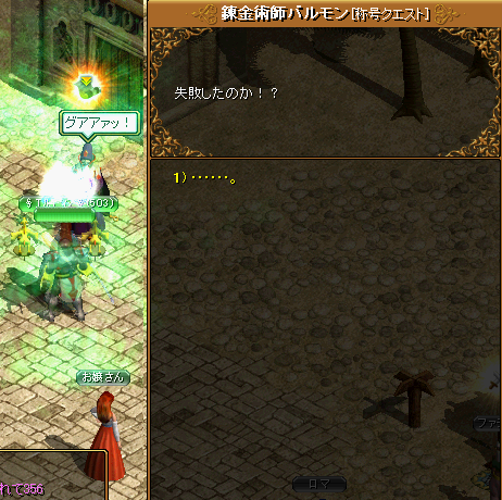 | クエスト受諾 | 砂漠村リンケン(44.14) 錬金術師バルモン |
