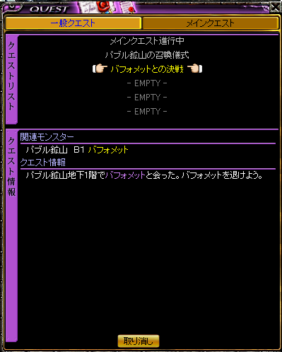 クエストはNPCからではなく、MOBから確率で1回のみ発生するタイプです。た
