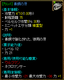 報酬として貰える青銅の牙は、ランダムで1~2つOPが付くようです。
