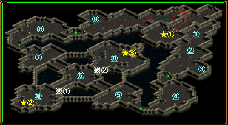 | ★①~③ | ★①⇒NPCデスビジョン ★②⇒チェックポイント“魔方陣” ★③⇒宝箱 |