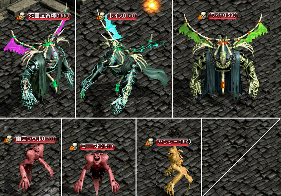 | BOSS情報 | BOSSらしいものは無し。ただし所々にいる“ワイト”が難点。 硬さ・攻撃の痛さがずば抜けてる上に、大体3体一緒にいます。アクティブなの で一定距離近付くと自動的に攻撃されるので、下手に突っ込むと死亡は当たり 前。 ワイトの攻撃は範囲攻撃もあるので、抵抗の低いメンバーがいた場 合、BISさんの状態・先走りでの攻撃開始は、下手すると全滅しかける事 も。 |